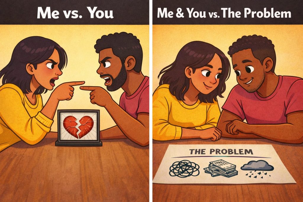 The next time you’re in conflict with your partner, take a moment to notice whether your stance is more binary than relational. Then intentionally shift your perspective from “me versus you” to “me and you verses the problem.”